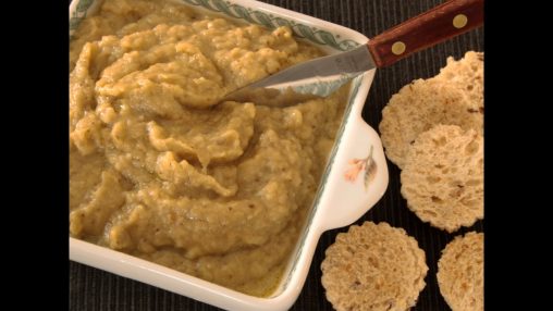 Ingredients: 1 large eggplant (about 1 pound) halved lengthwise 2 cloves garlic thinly sliced 1 package silken tofu drained well 2 tablespoons lemon juice 1/2 teaspoon fine sea…